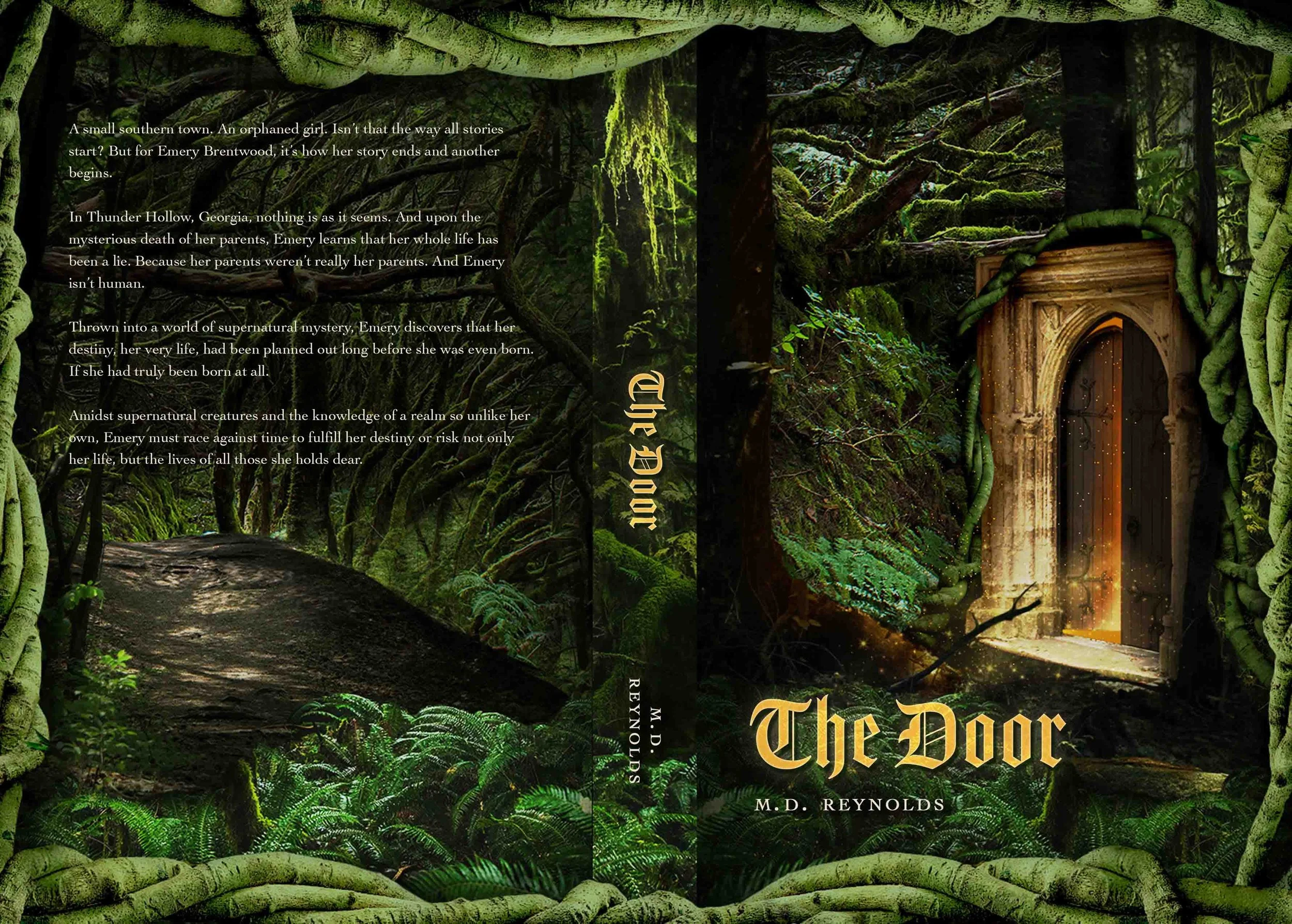 The Door is the first of a triology of young adult fantasy books. The story takes place deep in the lush Georgia low-country. The author of the book reached out needing a cover (front, spine, back) design for The Door. The final design will also be a point of reference for the rest of the triology’s cover designs.